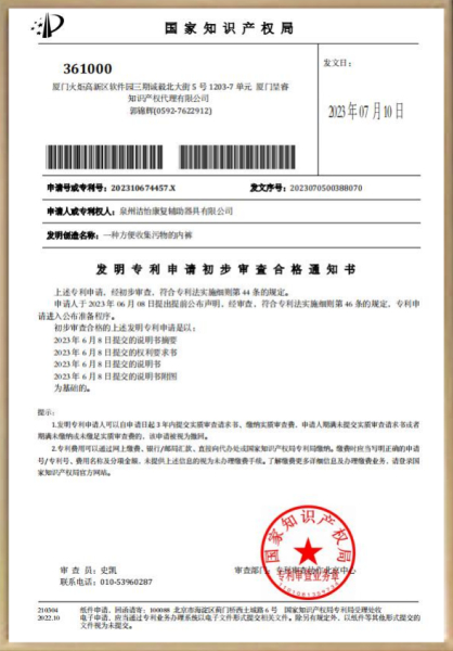 可穿着内裤、外裤完成“走”着、坐着、躺着时随时大小便并及时自动清理,完成冲洗、烘干、打包、免护理、免脱穿等任务。让患者更有尊严,让护工更省事。